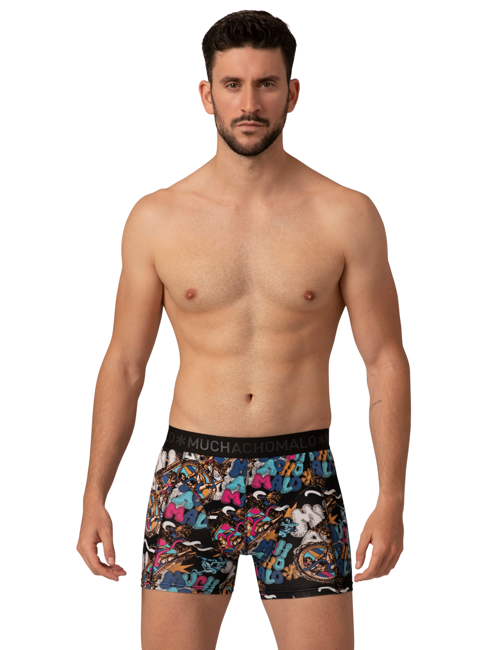 2-Pack kalsonger från Muchachomalo med print. Adam är inspirerat av ”Eva och Adam”. Det ena printet är mer färglatt och den andra går i blått på en svart bas.