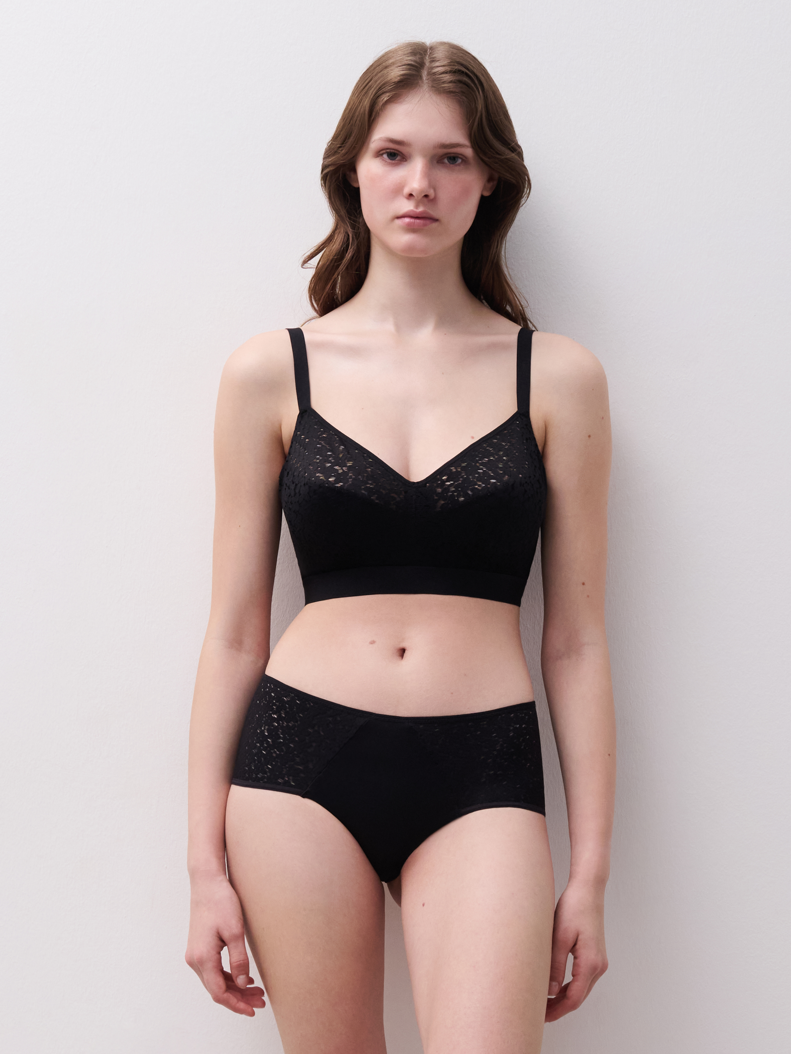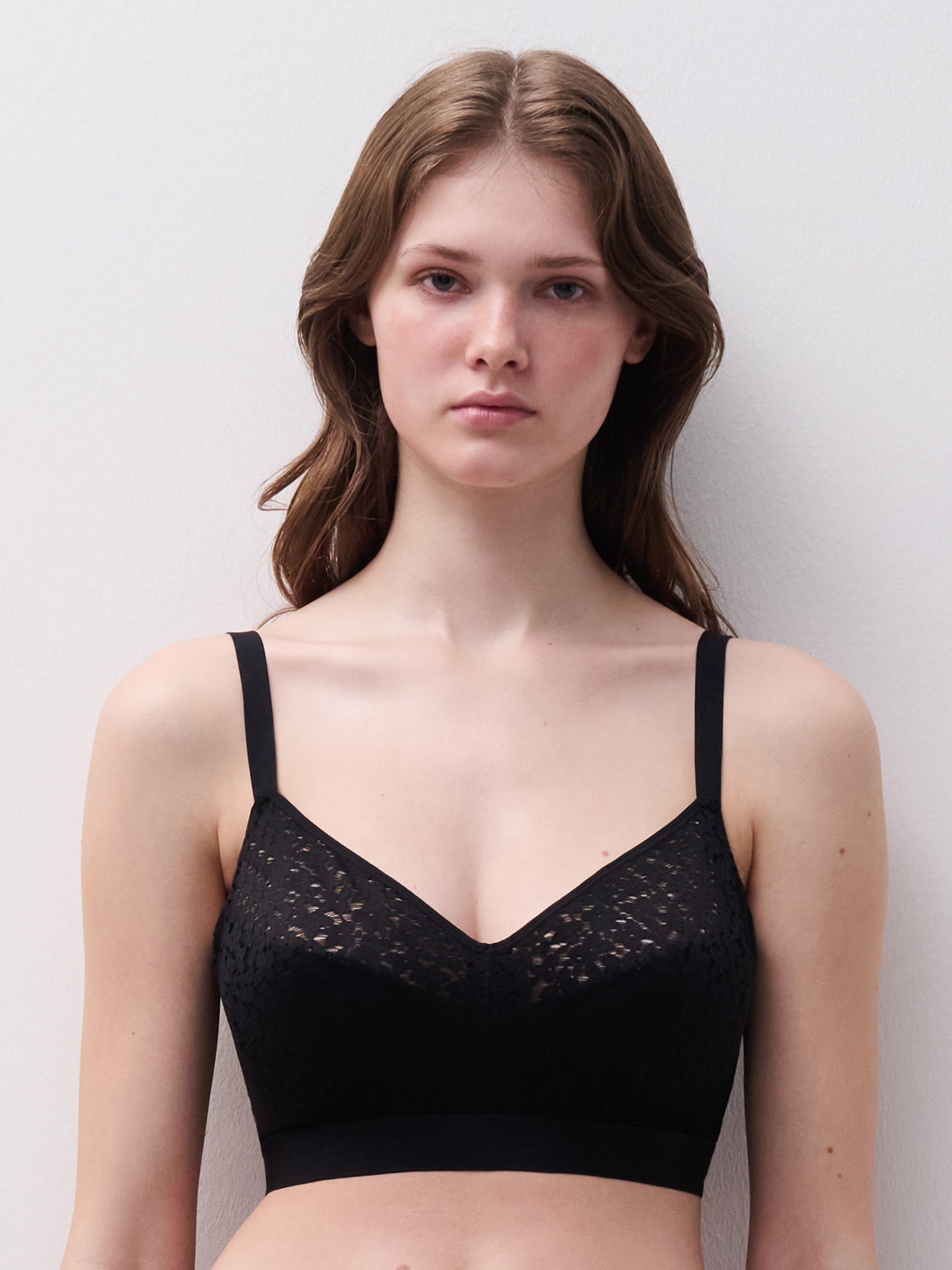 Bygelfri-bh med invändig konstruktion som garanterar oklanderligt stöd och trygg täckning. Formgjutna kupor i ultramjuk blommig spets, perfekta för vardagsbruk. Den elastiska och mjuka remsan under bysten håller produkten på plats hela dagen. Mycket täckande bystrygg i ogenomskinlig stickning med sömlös finish för en utjämnande effekt. Matcha med Norah trosa.